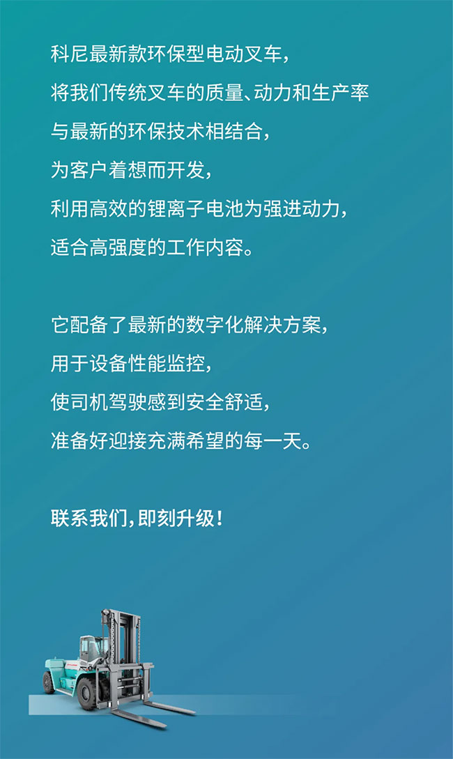 科尼電動叉車,帶給你360°全景視覺感受