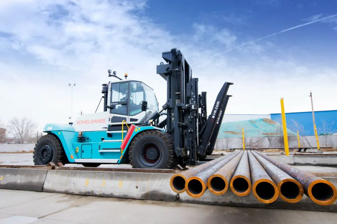 2021年底科尼向泰納瑞斯包鋼交付了兩臺(tái)安全可靠的重型叉車(chē),叉車(chē)裝配丹麥原裝進(jìn)口的E-L-M鋼管抱夾屬具,配合插齒側(cè)移功能,可以安全、快速、準(zhǔn)確地拾取長(zhǎng)達(dá)10多米的重型鋼管。