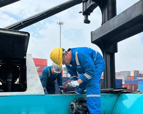“我們很高興將新型國四空箱堆高機交付給我們的老伙伴,幫助他們緩解業(yè)務(wù)挑戰(zhàn)和環(huán)保壓力,”KCL中國區(qū)服務(wù)總監(jiān)曹禹先生說,“同時在服務(wù)方面,我們也希望能夠給予客戶更加及時和的支持,從備件支持到服務(wù)響應(yīng),我們都將匹配鑫華錫的運營效率,駐場工程師將為客戶提供24h在線服務(wù)支持,減少停機時間,幫助客戶提升堆場的運轉(zhuǎn)效率。”