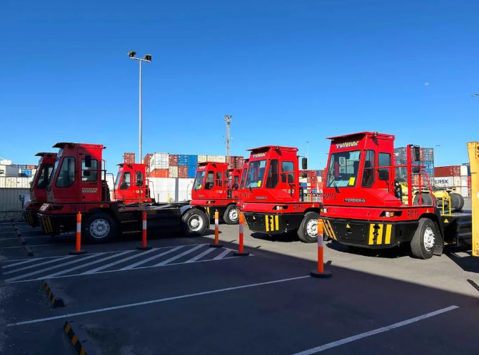近日,在澳大利亞,KCL向Patrick Terminal交付了9輛Terberg 350kw電動(dòng)碼頭牽引車,新設(shè)備將全部投入弗里曼特爾的碼頭運(yùn)營。