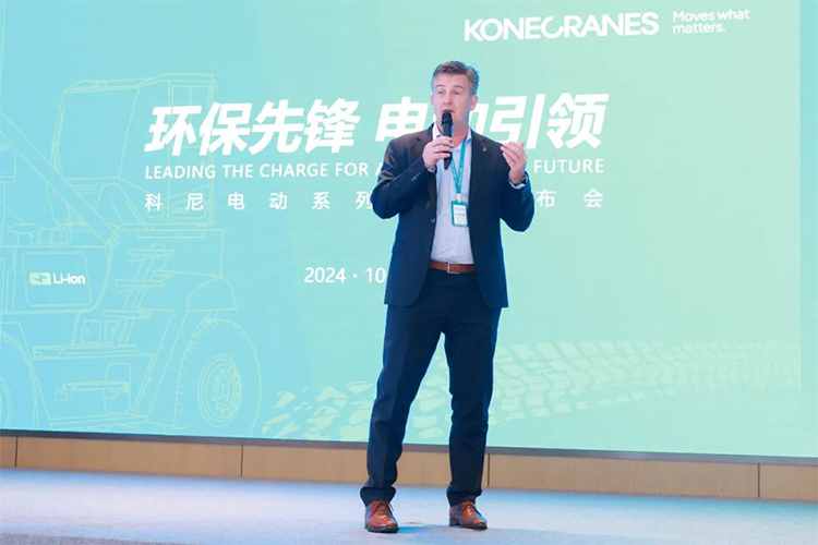 “今天推出的科尼E-ACE空箱堆高機(jī)恰逢其時(shí),技術(shù)成熟,非常具有競(jìng)爭(zhēng)力,同時(shí),我們的科尼上海組裝工廠可以實(shí)現(xiàn)快速交付。” 科尼叉車(chē)產(chǎn)品與技術(shù)管理總監(jiān)Jeffrey Stokes和科尼項(xiàng)目經(jīng)理奚煒在現(xiàn)場(chǎng)詳細(xì)介紹了科尼E-ACE空箱堆高機(jī)的性能、配置及相關(guān)技術(shù)。